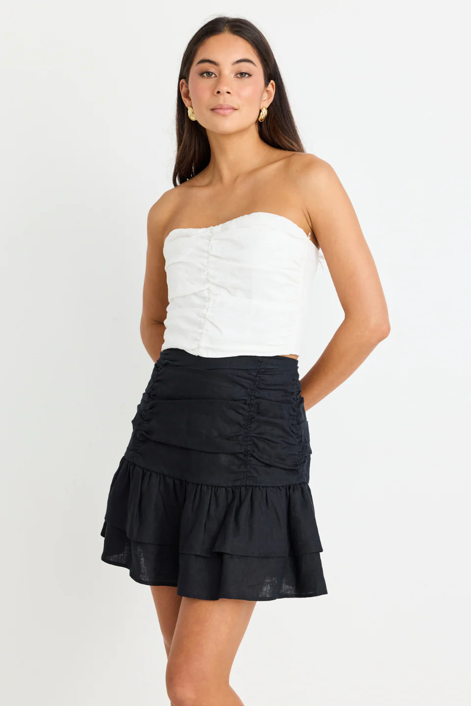 Elevate your summer style with our Ascend White Linen Top. Made with natural fibre linen, this lined top is perfect for hot days. The rouched detailing adds a touch of flair, making it versatile for any occasion. Whether you're by the beach or out on the town, this top is the perfect fit.