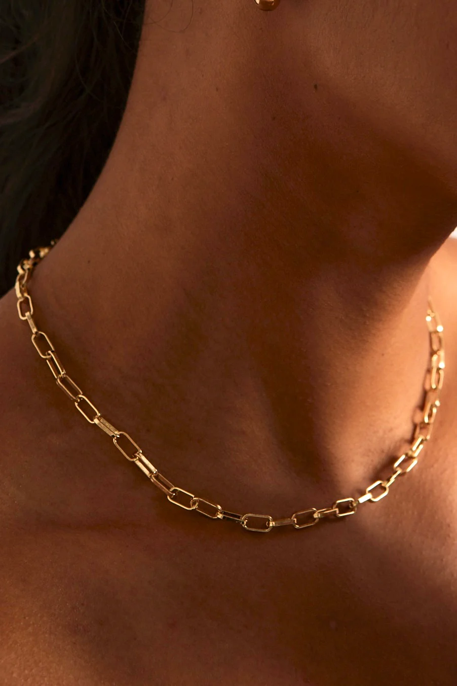 The stunning Paper Clip Necklace from Humble + Heart. This necklace is made from alloy, giving you that warm, gold, glowing look!